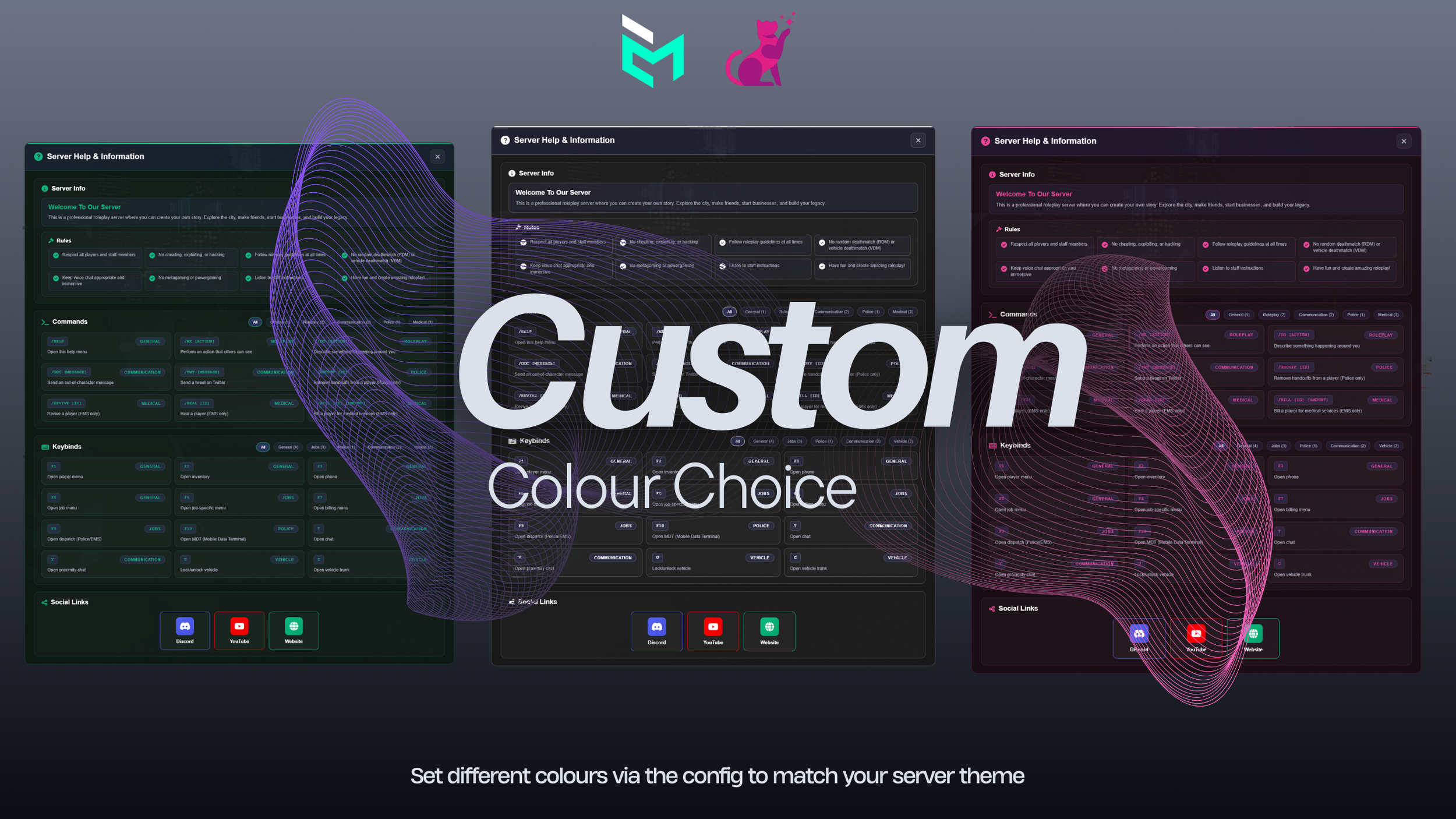 This is our new and free server information menu that players can view and use to view server keybinds, commands, rules and access links to your Discord and Youtube. It is free and designed for Qbox, QBcore and ESX roleplay servers. This script is also being uploaded to the forums.