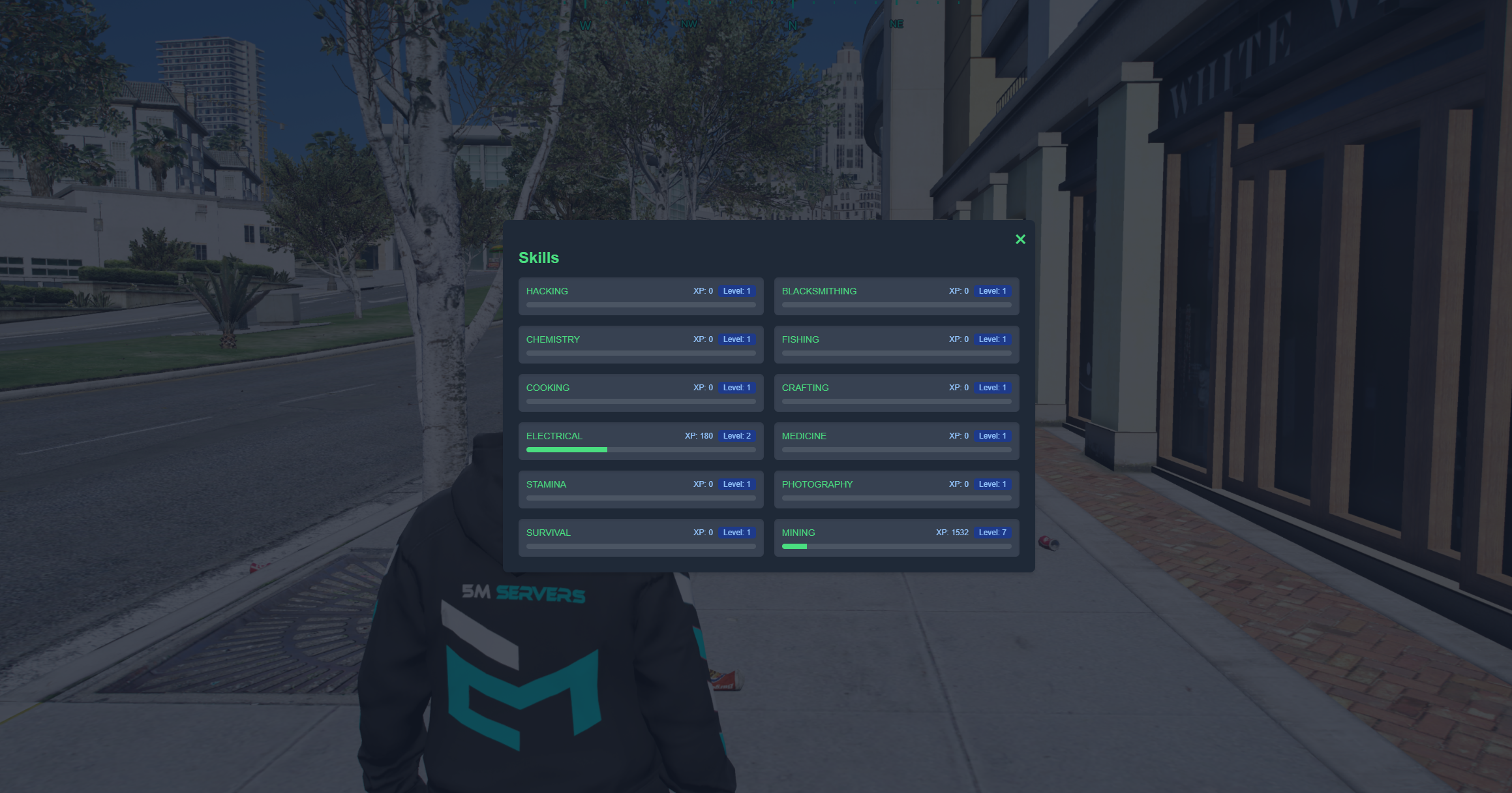 Currently we are building and adding new jobs for the next update. At the moment your players will earn XP when interacting with the Miner and Electrician job. Your players will only be able to purchase an own a drug lab if they are electrician level 200. We will update this with a new criminal stat which all criminal jobs will fill on completion. We have exciting things being created for this system.