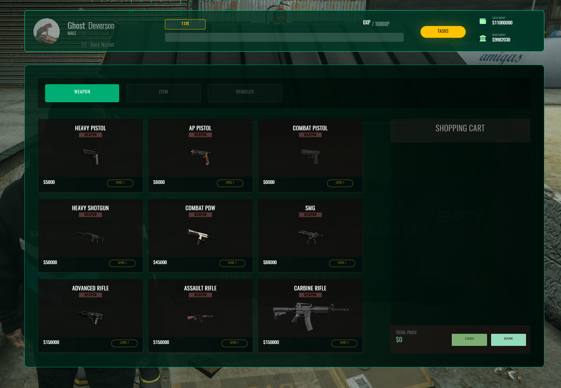 The server comes with an advanced script that allows players to rank up and earn XP when selling drugs. You can also do things like organize meets with gang members to sell large amounts and then either sell your drugs or steal the cash or supply! Check out this old video showcase